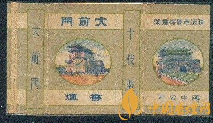 1916年,“大前門”卷煙由英美煙公司創(chuàng)牌。英美煙公司設(shè)計(jì)的煙標(biāo),主版畫面為北京天安門南側(cè)的正陽(yáng)門雄姿,副版圖案是建于明代的箭樓。因北京人習(xí)慣稱正陽(yáng)門為“前門樓子”,故卷煙商標(biāo)被命名為“前門”。