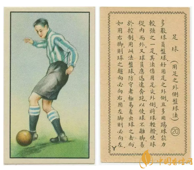 9、中國(guó)這個(gè)巨大的消費(fèi)市場(chǎng)并沒有被遺忘,這是一組針對(duì)中國(guó)市場(chǎng)制作的足球踢法教程系列卷煙卡片。