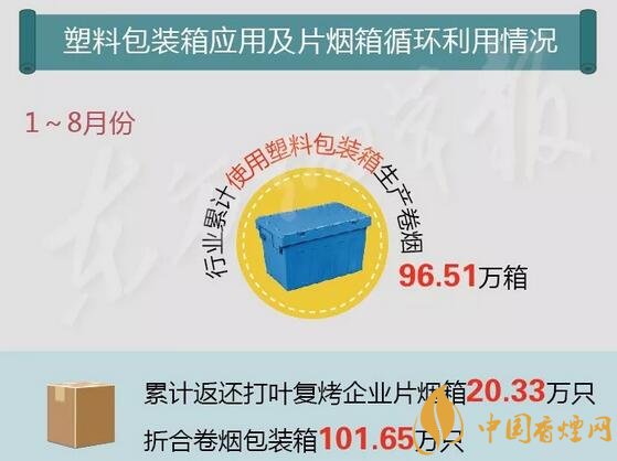 通報(bào)指出,1至8月份,行業(yè)累計(jì)使用塑料包裝箱生產(chǎn)卷煙96.51萬箱,累計(jì)返還打葉復(fù)烤企業(yè)片煙箱20.33萬只,折合卷煙包裝箱101.65萬只。