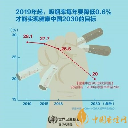 2019年世衛(wèi)組織全球煙草流行報(bào)告發(fā)現(xiàn),有50億人(約占世界人口的65%)目前被至少一項(xiàng)達(dá)到最高水平的MPOWER措施所保護(hù)。因此,全球吸煙率從2007年的22.5%下降到2017年的19.2%,在過去十年里相對(duì)下降了15%。相比之下,中國(guó)的吸煙率遠(yuǎn)遠(yuǎn)高于全球平均水平,進(jìn)展也明顯相較緩慢?!督】抵袊?guó)行動(dòng)》為深化煙草控制工作,并讓其他部門參與解決這一重要公共衛(wèi)生問題提供了機(jī)遇。2018年成人煙草調(diào)查結(jié)果和《健康中國(guó)行動(dòng)》讓我們有理由相信,中國(guó)煙草控制的轉(zhuǎn)折點(diǎn)不會(huì)遙遠(yuǎn)。