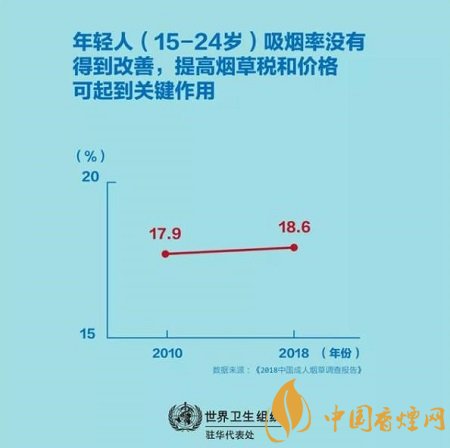 當(dāng)前吸煙者在注意到煙盒包裝上的健康警示后考慮戒煙的比例沒有變化,2010年為36.4%,而2018年為36.3%。這表明當(dāng)前的煙盒包裝上的健康警示在警告吸煙的危害方面可能并無(wú)效果。更令人擔(dān)憂的是,年輕人(15-24歲)的吸煙率沒有得到改善。2010年為17.9%, 而2018年為18.6%,此外,煙草價(jià)格仍然很便宜,每包20支卷煙的價(jià)格中位數(shù)僅為9.9元(約1.4美元)。