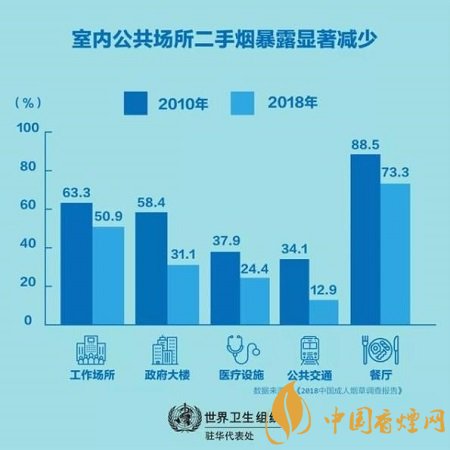 最近發(fā)布的2018年中國(guó)成人煙草調(diào)查顯示,過去十年中國(guó)控?zé)煿ぷ魅〉昧酥匾M(jìn)展。與八年前相比,現(xiàn)在中國(guó)人遭受二手煙危害的幾率要小很多,室內(nèi)公共場(chǎng)所二手煙暴露的顯著減少就證明了這一點(diǎn),比如工作場(chǎng)所(63.3%降至50.9%),政府大樓(58.4%降至31.1%),醫(yī)療設(shè)施(37.9%降至24.4%),公共交通(34.1%降至12.9%),甚至餐廳(88.5%降至73.3%)。
