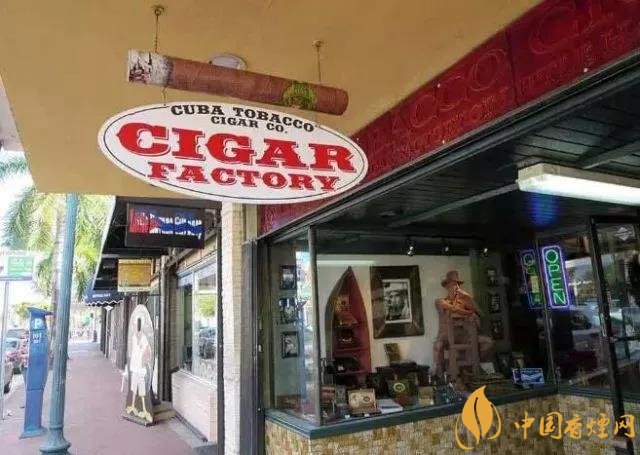 美國邁阿密小哈瓦那的雪茄店,一支碩大的雪茄煙懸掛在店鋪前廊,店招下掛白點(diǎn)紅色店名,很是別致。