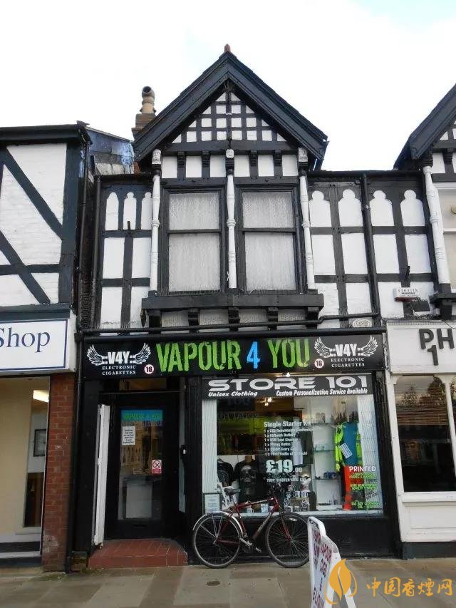 英國柴郡的蒸汽煙店,點(diǎn)名以“4”,代替同音的“for”,卷煙零售店怎么樣?古典的店面下給人一種調(diào)皮的感覺,很符合其主營(yíng)電子煙產(chǎn)品的經(jīng)營(yíng)內(nèi)容。
