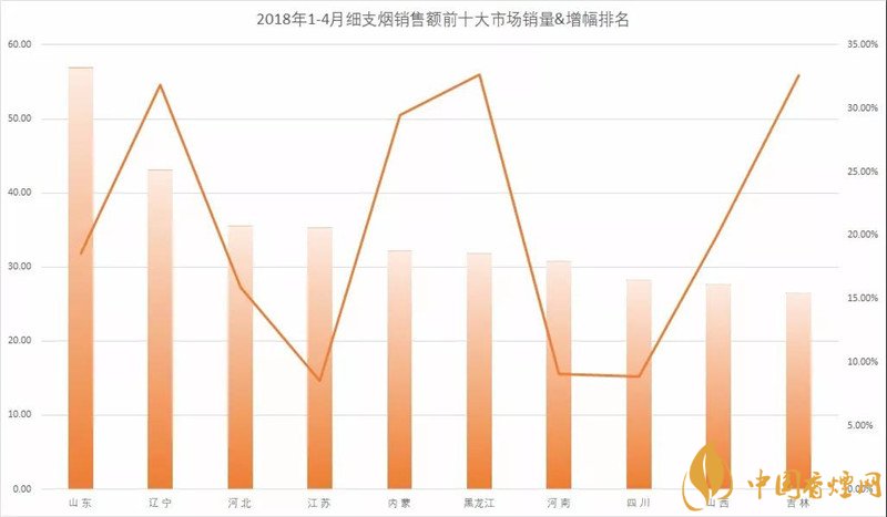眾所周知近年來(lái)細(xì)支煙在柜內(nèi)可謂十分十分盛行!細(xì)支煙得到了消費(fèi)者的廣泛接受,并以燎原之勢(shì)把外煙帶來(lái)的新鮮感迅速轉(zhuǎn)換為民族品牌的認(rèn)同度。如今東三省細(xì)支煙再次脫銷(xiāo),為了更好的了解,下面香煙網(wǎng)小編為大家整理介紹2018年1-4月細(xì)支煙銷(xiāo)量銷(xiāo)售額前十大市場(chǎng)排名。