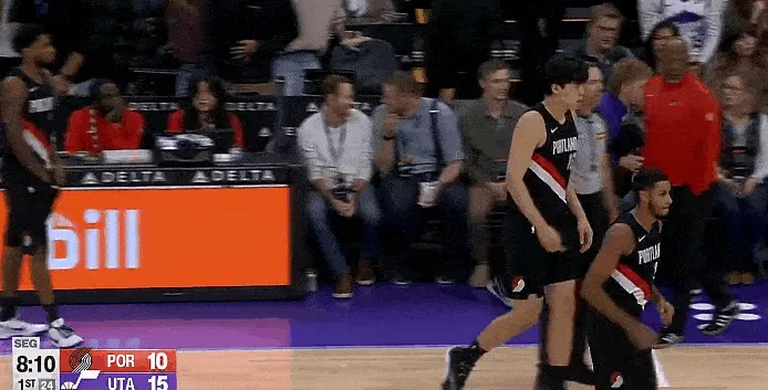 NBA季前賽,爵士對(duì)陣開拓者的楊瀚比賽正在進(jìn)行中。