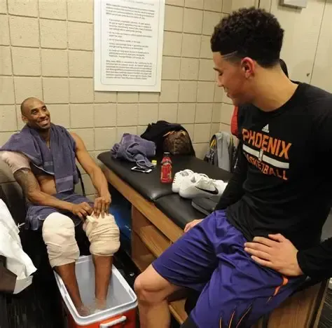 九年前他倆初遇時(shí),布克在比賽中對(duì)科比用過(guò)科比的招式,當(dāng)時(shí)科比一笑;之后科比告訴布克,“繼續(xù)努力,永遠(yuǎn)不要在這個(gè)聯(lián)盟中停下來(lái)!……你有步伐,基本功完整,有成為傳奇的資質(zhì)!”