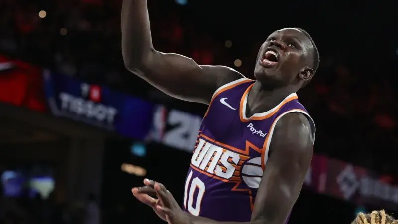他的無(wú)球意識(shí)遠(yuǎn)超同齡人,能跟上——如果給他傳的話——布克和杰倫·格林的突破擊地傳球。他可以空接,可以在扣籃位等餅,也能運(yùn)一兩步球后終結(jié)。他有雙不錯(cuò)的手。