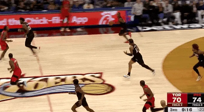 NBA常規(guī)賽,76人對(duì)陣猛龍的馬克姆高比賽正在進(jìn)行中。
