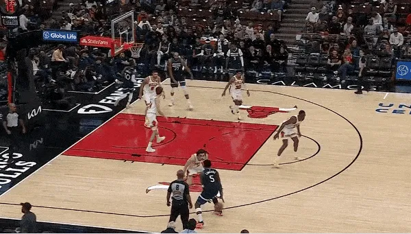 NBA季前賽,森林狼客場(chǎng)對(duì)陣公牛的持球撤步比賽正在進(jìn)行中。