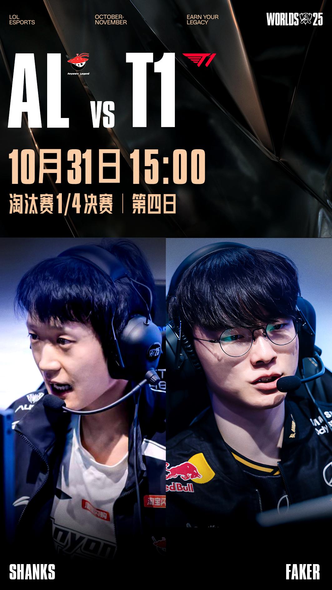 10月31日 15:00 AL對戰(zhàn)T1(BO5)