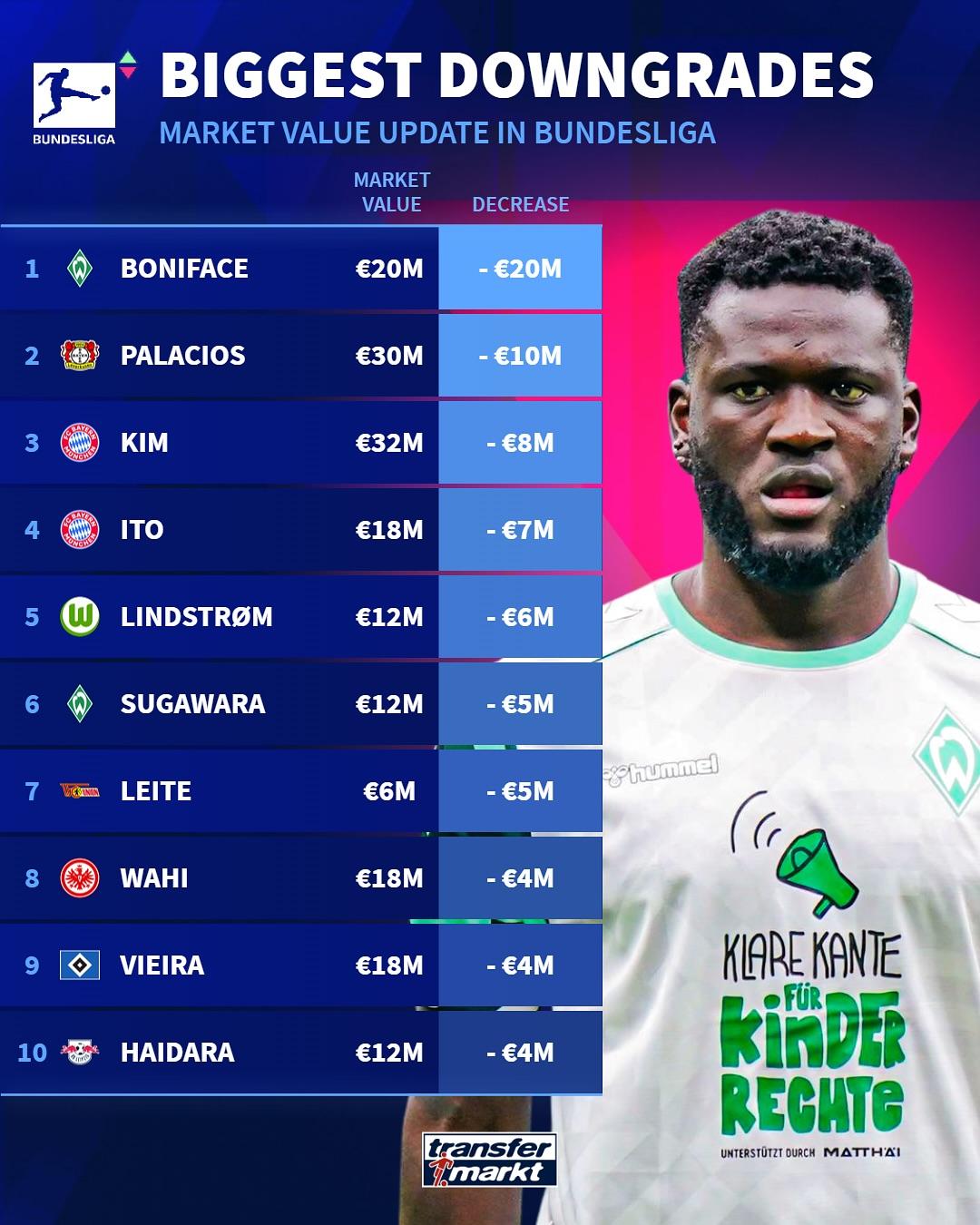 下跌博尼法斯(不萊梅)——2000萬歐元(下跌2000萬)