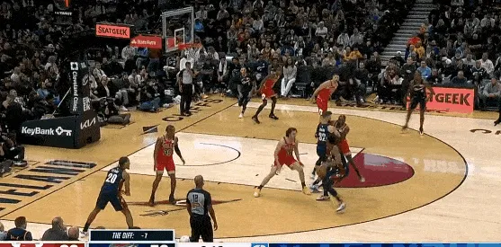 第三節(jié)比賽,前變亨特大幅度體前變向晃倒吉迪,向晃一飛沖天雙手暴扣。沖天