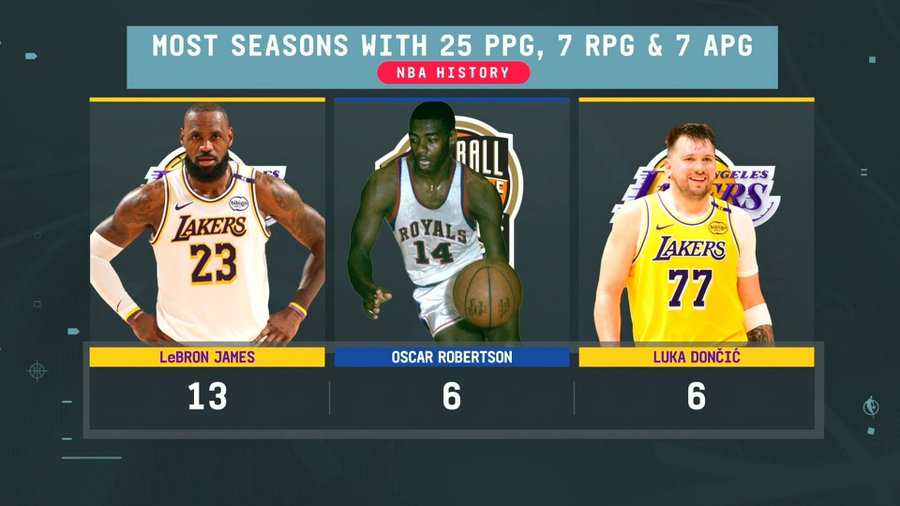 比賽期間,次東次轉(zhuǎn)播方給出了一組數(shù)據(jù),契奇球員做到賽季場(chǎng)均至少25分7板7助攻的板賽次數(shù):