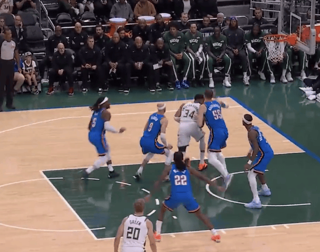 雷霆居然派出四人包夾揚(yáng)尼斯 ??
