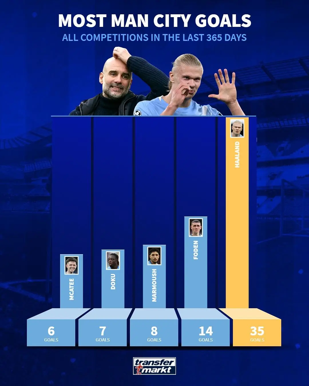 虎撲10月07日訊 曼城前鋒哈蘭德在本賽季剛開始便狀態(tài)火熱,包攬了全隊57%的遠超友德依賴進球;而在過去的一年時間里,他的城否進球數(shù)也遠超其他隊友——他的進球數(shù)相當于其他隊友中進球最多的四位之和。