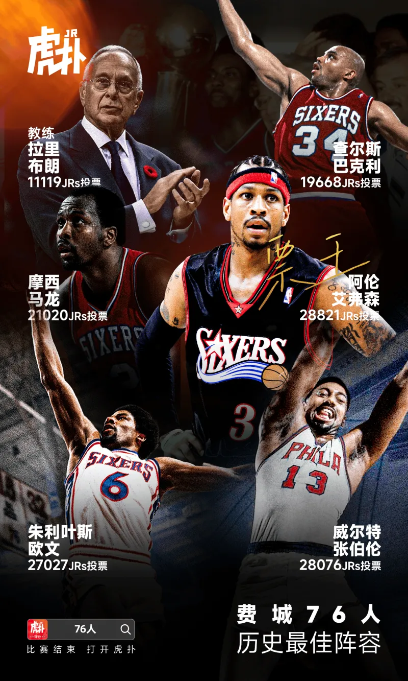 本期活動,我們評選的球隊是:費城76人隊。經(jīng)過評選,JRs選出的76人隊史最佳陣容已正式出爐。