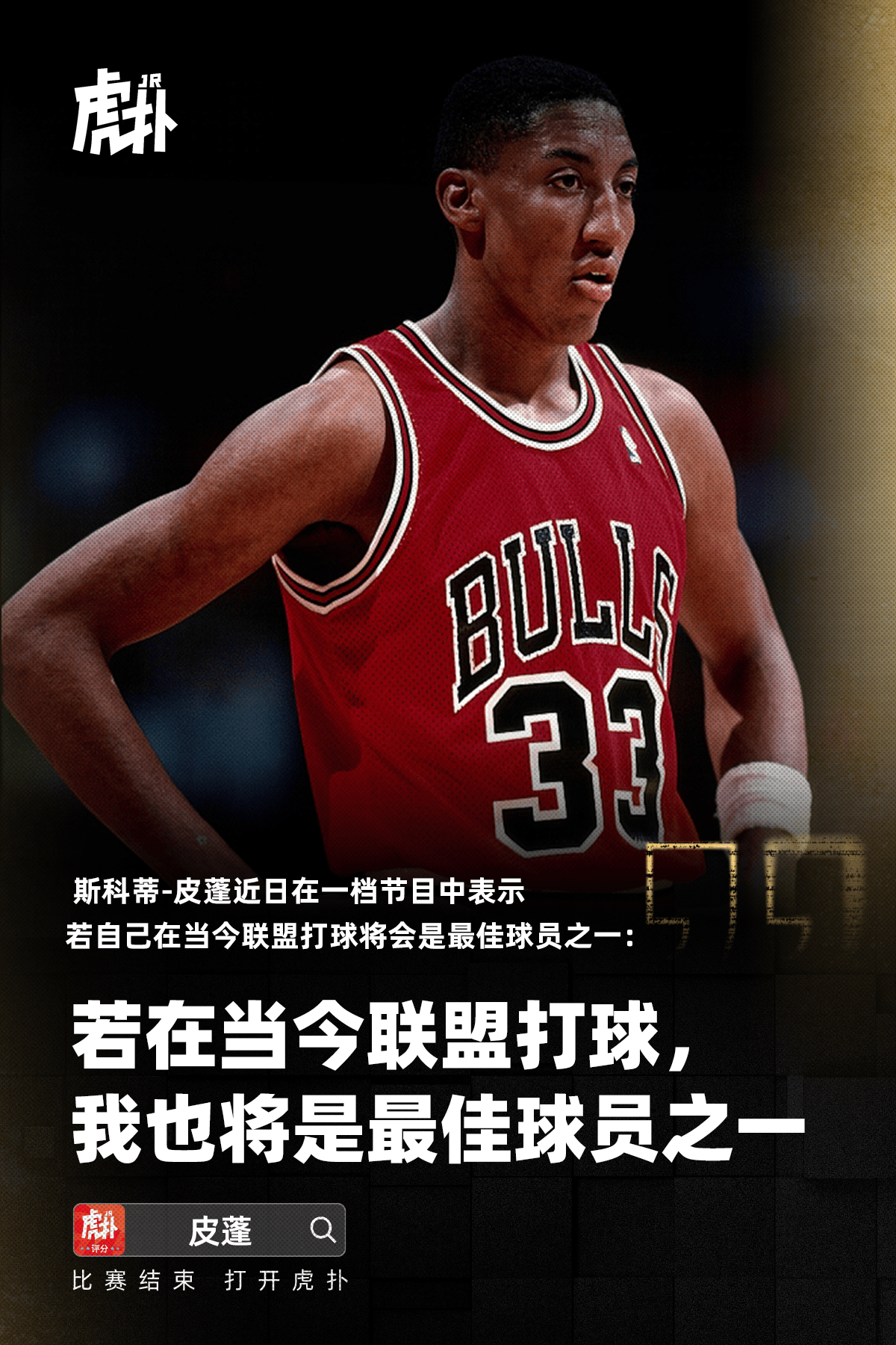 虎撲10月06日訊 斯科蒂-皮蓬近日在一檔節(jié)目中表示若自己在當今聯(lián)盟打球將會是最佳球員之一。