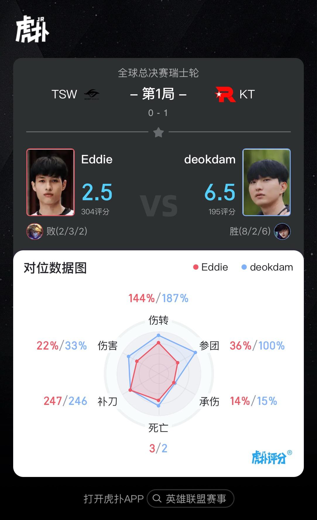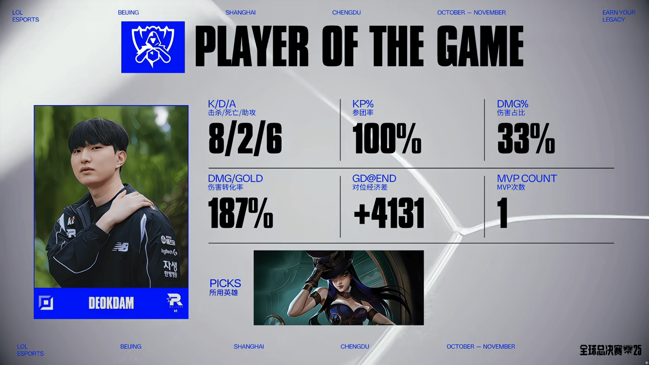 虎撲10月16日訊 在剛剛結(jié)束的S15世界賽瑞士輪KT對(duì)陣TSW比賽中,Deokdam女警打出8/2/6戰(zhàn)績(jī),戰(zhàn)績(jī)拿下KT對(duì)陣TSW對(duì)局MVP,女警拿下這是打出對(duì)陣W對(duì)他第1個(gè)MVP。