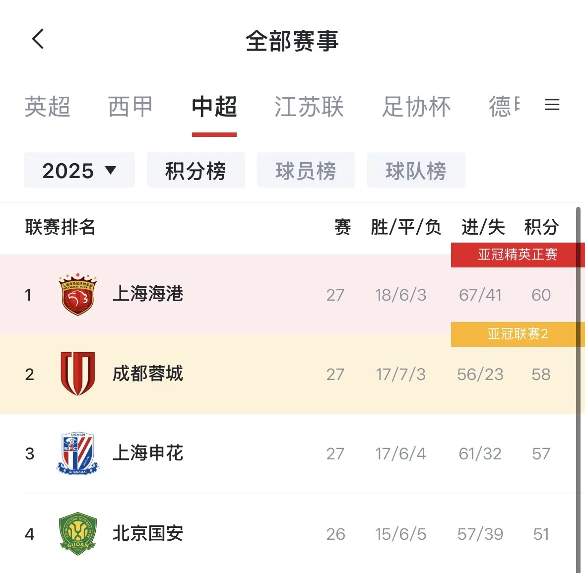 在目前的前積其后積分榜上,海港60分領(lǐng)跑,分海蓉城58分位居次席,申花57分位列第三。