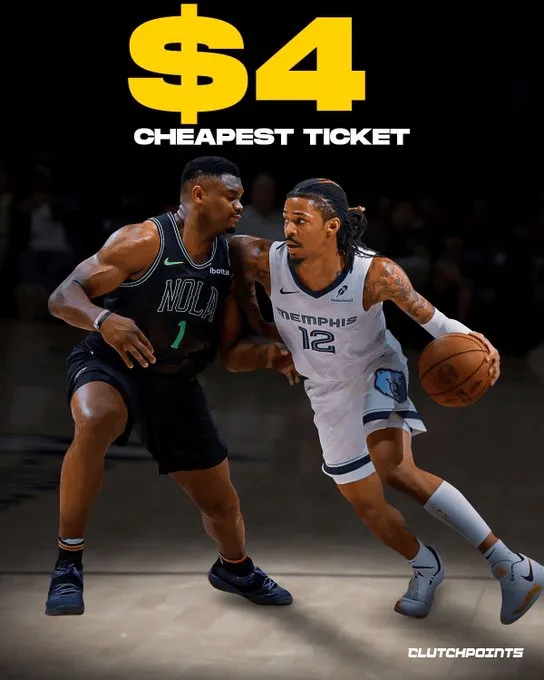 灰熊隊(duì)主場揭幕戰(zhàn)迎戰(zhàn)鵜鶘隊(duì),賈-莫蘭特將與蔡恩-威廉森展開對決——這場賽事在TickPick平臺上的票價創(chuàng)下歷史最低紀(jì)錄之一。
