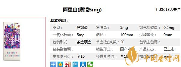 阿里山白魔鏡香煙其實(shí)就是這款阿里山(魔鏡5mg),為什么叫它白魔鏡呢,因?yàn)檫@款香煙后面有一個鏡子,這一點(diǎn)也是這款香煙最為特別的地方,當(dāng)然這個設(shè)計(jì)在真龍的燃情時光中也有過出現(xiàn),那么在介紹阿里山白魔鏡香煙價格圖片之前,先來看一看阿里山白魔鏡多少錢一包,這款香煙的價格為16元/包。
