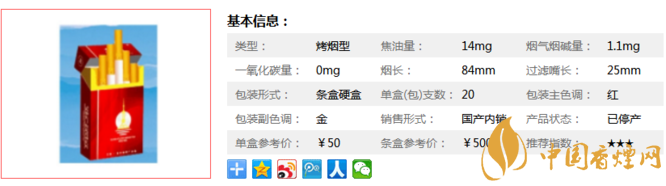 | 包裝主色調:紅 | 包裝副色調:金 | 銷售形式:國產內銷> | 產品狀態(tài):已停產 |