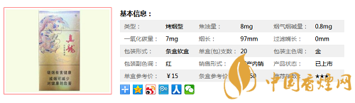 真龍所采用的原料來自巴西、津巴布韋以及國內(nèi)云南、貴州、湖南等國際國內(nèi)優(yōu)質(zhì)煙葉產(chǎn)區(qū),進(jìn)入生產(chǎn)流程前,還要經(jīng)過精工整選。真龍高端規(guī)格還采用了經(jīng)過山洞貯藏自然醇化的煙葉,卷煙成品的煙葉原色原香保持良好,品質(zhì)純正,香氣充足。下面一起來看下真龍凌云的具體參數(shù):一盒20支,煙長97mm,焦油量8mg,煙堿量0.8mg,一氧化碳量7mg。