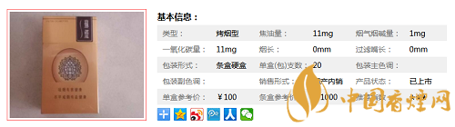 | 類型 :烤煙型 | 焦油量 :11mg | 煙氣煙堿量 :1mg | 一氧化碳量 :11mg |