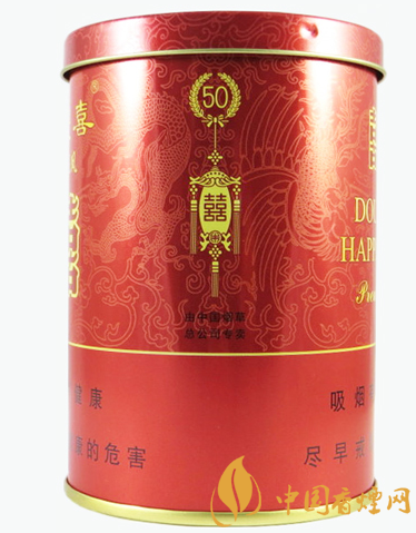獨(dú)有的真空保存技術(shù)令卷煙的品質(zhì)得到完美的體現(xiàn)。 其外包裝采用鐳射轉(zhuǎn)移技術(shù),高貴的罐裝禮品盒,體面而討彩。此煙包裝圖案如同其名,紅底金字,有雙喜有龍鳳,開罐聞味,一股清香之氣撲鼻而來。送禮,結(jié)婚送禮,好意頭。