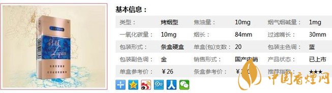 | 類型 :烤煙型 | 焦油量 :10mg | 煙氣煙堿量 :1mg | 一氧化碳量 :10mg |