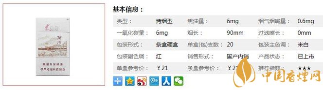 | 類型 :烤煙型 | 焦油量 :6mg | 煙氣煙堿量 :0.6mg | 一氧化碳量 :4mg |