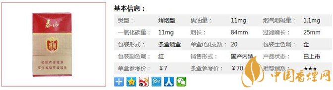 泰山紅將軍采用全新茶甜香技術(shù),融合泰山品牌全新茶甜香增香保潤(rùn)技術(shù),茶香精華隨煙氣緩慢釋放,有效凈化吸食口感,全面降低口腔及喉部刺激感。下面我們一起來(lái)看泰山紅將軍的參數(shù)信息:焦油量:11mg. 煙堿量:1.1mg. 一氧化碳量:11mg.