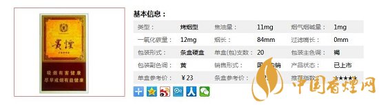 | 類型 :烤煙型 | 焦油量 :11mg | 煙氣煙堿量 :1mg | 一氧化碳量 :12mg |