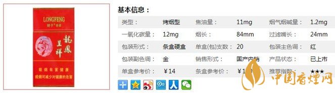 嬌子硬龍鳳呈祥煙支長84mm,過濾嘴長24mm,硬龍鳳呈祥香煙以卟啉融合多種天然植物提取活性成分,可有效降低卷煙煙氣中四類十余種有害成分,是嬌子專利減害與配方技術(shù)完美結(jié)合的體現(xiàn)。下面我們一起來看嬌子硬龍鳳呈祥的參數(shù)信息:焦油量:11mg. 煙堿量:1.2mg. 一氧化碳量:12mg.