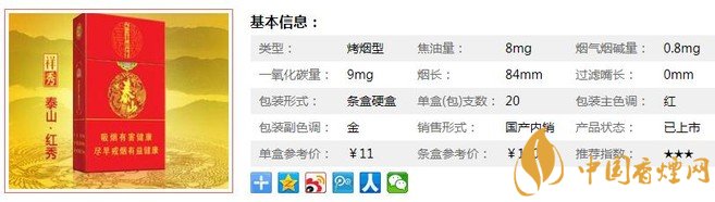 泰山(祥秀)是泰山“秀”字輩中價(jià)格最實(shí)惠的一款,這煙的包裝整體以紅色為主色調(diào),色彩紅火喜慶。雖然口感不是很醇,但煙氣不嗆較柔順??谖镀?,偏淡,在8焦的煙里算不錯(cuò)的,適合做口糧。下面就由香煙網(wǎng)小編帶大家一起來了解泰山祥秀的相關(guān)信息。