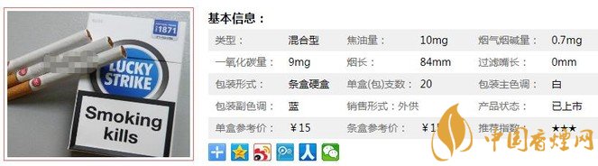 一些非主流版本的好彩香煙,包裝設(shè)計(jì)方面的視覺感,絕對(duì)要比其口感和味道方面,更能吸引煙民一些。這款好彩藍(lán),就是屬于包裝設(shè)計(jì)遠(yuǎn)優(yōu)于口感味道的一款。經(jīng)香煙網(wǎng)小編市場(chǎng)調(diào)查好彩藍(lán)售價(jià)為15元/包。