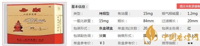 西湖明珠煙支長84mm,過濾嘴長:20mm,煙氣較沖,越抽到后面煙氣越濃,口感濃厚,降焦技術一般,焦油量較高,這款煙比較適合老煙民,新煙民可能抽不慣。下面我們一起來看西湖明珠的參數信息:焦油量:15mg 煙堿量:1.2mg 一氧化碳量:15mg