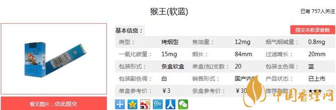 以上便是由香煙網(wǎng)小編為大家介紹的關(guān)于猴王軟藍(lán)價(jià)格及參數(shù) 陜西低價(jià)煙中的佼佼者的相關(guān)信息,想要了解更多有關(guān)內(nèi)容請點(diǎn)擊:猴王喜慶價(jià)格及參數(shù) 猴王喜慶獨(dú)家口感分析