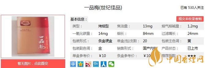 以上便是由香煙網(wǎng)小編為大家介紹的關(guān)于 一品梅世紀佳品價格及參數(shù) 一品梅世紀佳品獨家口感分析的相關(guān)信息,想要了解更多有關(guān)內(nèi)容請點擊:泰山八仙過海價格一覽 八仙過海各顯神通