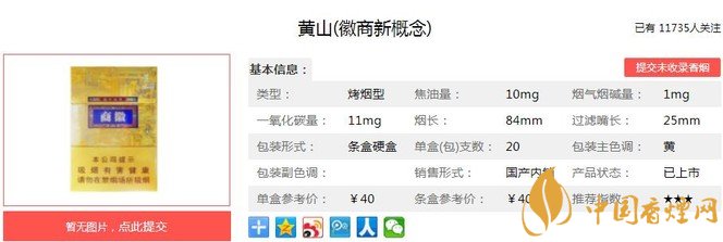 以上便是由香煙網(wǎng)小編為大家介紹的關(guān)于黃山徽商新概念口感及參數(shù) 黃山徽商新概念價(jià)格40元一包的相關(guān)信息,想要了解更多有關(guān)內(nèi)容請(qǐng)點(diǎn)擊:芙蓉王塑藍(lán)口感及參數(shù)介紹 芙蓉王塑藍(lán)多少錢(qián)一包