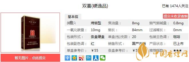 以上便是由香煙網(wǎng)小編為大家介紹的關(guān)于雙喜硬逸品多少錢一包 雙喜硬逸品口感及參數(shù)介紹的相關(guān)信息,想要了解更多有關(guān)內(nèi)容請(qǐng)點(diǎn)擊:黃金葉硬黃金多少錢一盒 黃金葉硬黃金口感醇香細(xì)膩