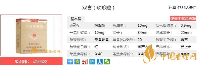 把無香精香煙的概念運用到了極致,沒有用任何香精香料,單純憑對原料的選材、烘烤調(diào)制、工藝配伍把煙做到這個味道的確是非常了不起。經(jīng)香煙網(wǎng)小編市場調(diào)查雙喜硬珍藏售價為40元/包。