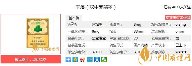以上便是由香煙網(wǎng)小編為大家介紹的關(guān)于玉溪翡翠香煙價(jià)格 玉溪翡翠多少錢(qián)一包的相關(guān)信息,想要了解更多有關(guān)內(nèi)容請(qǐng)點(diǎn)擊:泰山望岳價(jià)格 山東中煙低焦產(chǎn)品的經(jīng)典之作