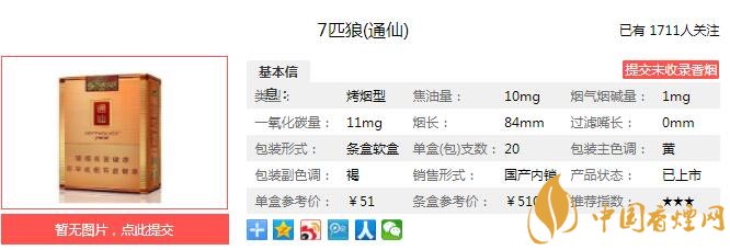 隨著高端人士對于卷煙吸食的安全、健康因素愈加關(guān)注,“七匹狼”秉承消費(fèi)者利益至上,開創(chuàng)高端卷煙“全生態(tài)”體驗(yàn),確立了“煙香自然突出,煙氣醇和細(xì)膩,煙味細(xì)柔綿長”的高端品類風(fēng)格特征,創(chuàng)建“生態(tài)綿柔香”高端卷煙全新品類。 經(jīng)香煙網(wǎng)小編市場調(diào)查七匹狼通仙售價為51元/包。