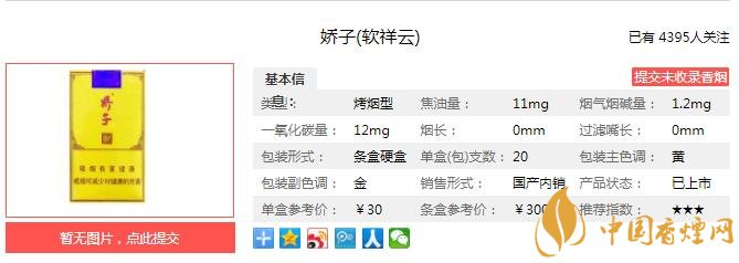 以上便是由香煙網(wǎng)小編為大家介紹的關(guān)于嬌子軟祥云多少錢一包 嬌子軟祥云口感分析的相關(guān)信息,想要了解更多有關(guān)內(nèi)容請點(diǎn)擊:大青山昭君和親價(jià)格 大青山昭君和親中支口感分析