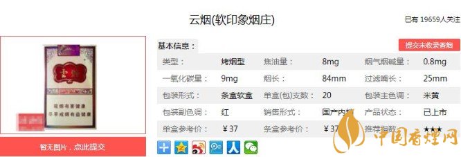 云煙(印象煙莊)系列與云煙重九系列、印象系列同出一脈,香原料均采自石林印象煙莊。煙支風(fēng)格和重九也很相似,但是卻有著自己的特色。金棕色流紋襯以金紅色云煙行書(shū),黃色的拼音字母,相互襯托出一種檔次感。下面跟著香煙網(wǎng)小編一起來(lái)了解云煙(軟印象煙莊)的相關(guān)信息吧。