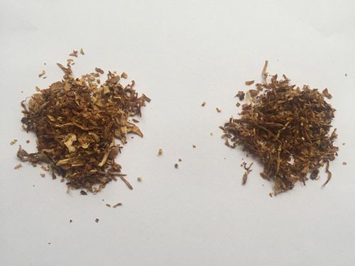 通過上邊的牡丹(軟)香煙真假鑒別圖可以發(fā)現(xiàn):真煙煙絲色澤金黃,呈絲條狀,有油潤(rùn)質(zhì)感;而假煙煙絲呈棕黑色,碎末率較高,香精味道比較濃。