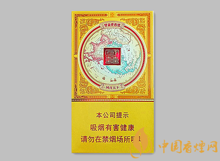 金國喜細(xì)支采用的是“天子黃”與“貴族紫”完美糅合,輔以側(cè)翻式開蓋設(shè)計,彰顯尊貴風(fēng)雅格調(diào),五星級視覺與享受。煙盒正背面的主圖案是由北半球和南半球的地圖構(gòu)成,地圖的顏色有淡藍(lán)色和深紅色,由七大洲的板塊和海洋組成,有著世界性的大格局和“一帶一路”的概念,非常的霸氣威嚴(yán),過目不忘。