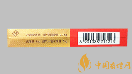 | 類型 :烤煙型 | 焦油量 :8mg | 煙氣煙堿量 :0.7mg | 一氧化碳量 :7mg |